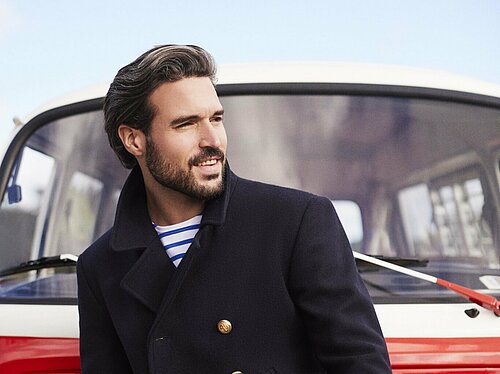 Let's continue with one of the brand's flagship men's products: the "Toulon" peacoat.